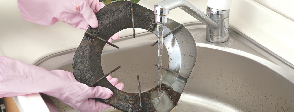 コゲを溶かして落とすクリーナー。頑固なコゲや油汚れに「塗って、放置して、洗い流す」だけ。使い古した、...